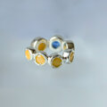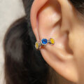 ミルキーイエローとブルーのジルコニアを使用したブルーの差し色が個性的な印象を持たせるイヤカフ。