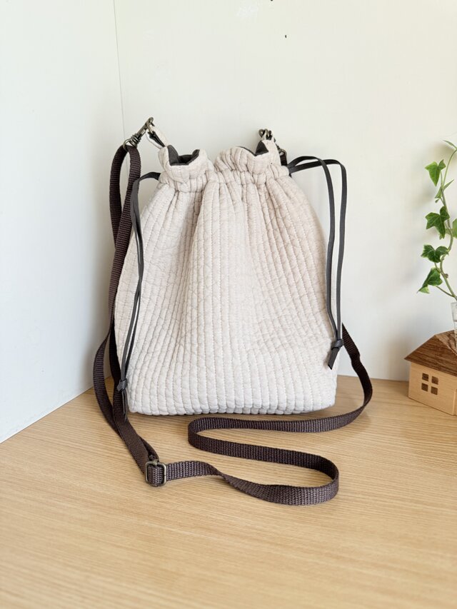 素材は、外生地がふかふかのヌビキルト、内生地はコットンです。