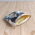 猫と薔薇柄 パネル生地 16cmフラットポーチ ポケット付き オフホワイト 430