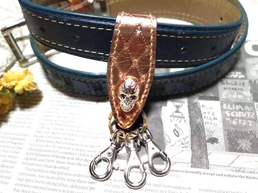 本革 手縫い キーループ ベルトループキーホルダー キーホルダー レザークラフト ハンドメイド ドクロ 髑髏 骸骨 コンチョ 一点物 レディース バイク バイカ― ライダー