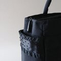 黒色のフランスリボンに黒色の撥水性ナイロンで漆黒になった袋工房定番バッグ、