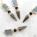 二つをつなぐのは黒のボタンカット。引き締め役に最適な小粒です。