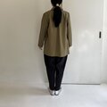 素材は高密度のコットンで、普通地よりやや厚手で、透け感はあまりありません。生地に張りがあり、高密度のため風を通さない素材です。お色はカーキです。