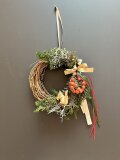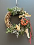 森の香りのする小さなリースです。小さな赤い実のついた、クリスマスに限らず飾っていただける、ナチュラルで素朴なデザインのかわいらしいリース。ボックス入りなので、プレゼントにもおすすめです。