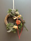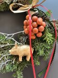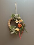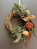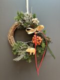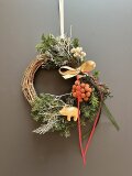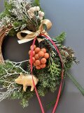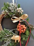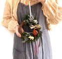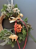 森の香りのする小さなリースです。小さな赤い実のついた、クリスマスに限らず飾っていただける、ナチュラルで素朴なデザインのかわいらしいリース。ボックス入りなので、プレゼントにもおすすめです。