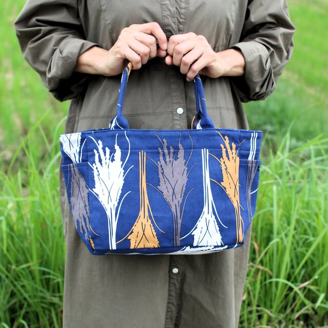 トート(サイドポケットS) 「イネ」_オイシイネ!_稲穂(ネイビー)