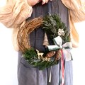森の香りのする小さなリースです。小さな赤い実のついた、クリスマスに限らず飾っていただける、ナチュラルで素朴なデザインのかわいらしいリース。ボックス入りなので、プレゼントにもおすすめです。