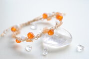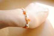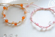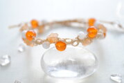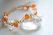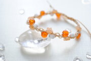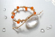 透明感がある明るめのレッドオレンジカラーのカーネリアンとオレンジアベンチュリンのお星さまを編み込みました。ビタミンカラーのかわいいブレスレットです。