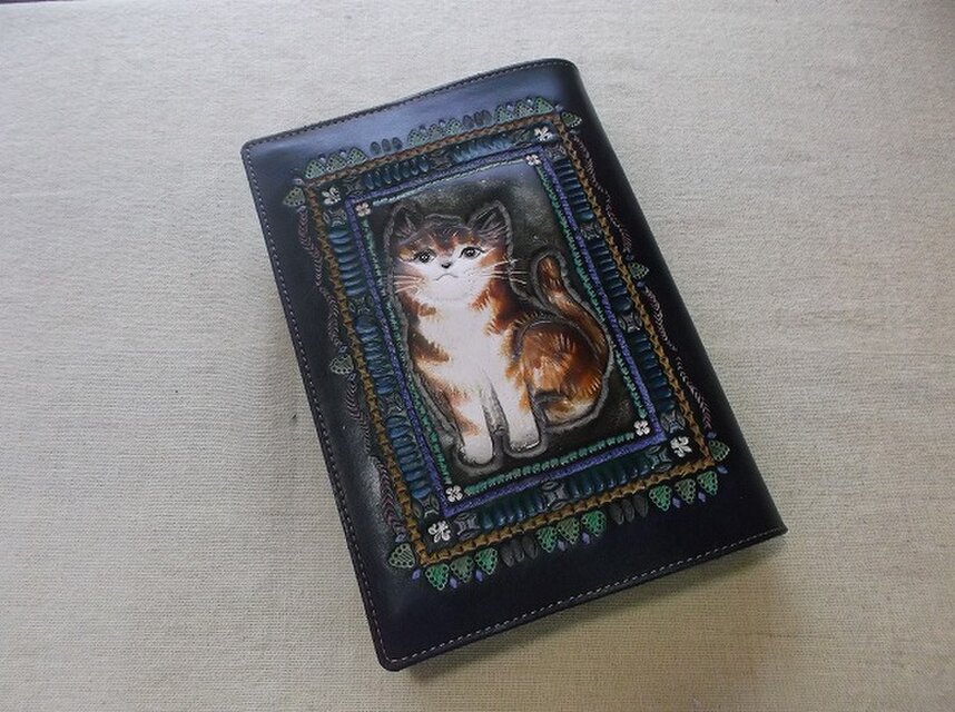 刻印配列や染色はさることながら、使い込むほどに、経年変化で艶が増しより使いやすくなることがほかの素材のブックカバーにはない最大の特徴だと思います。