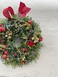 赤い木の実がたくさん使われ緑の葉っぱとのコントラストがとてもセンスの良いリースで一足先にクリスマスを迎えた気分になりました.