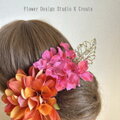 オレンジのダリアとピンクの紫陽花の髪飾り フラメンコ ダンス フォーマル 結婚式 袴 髪飾り 花飾り フローレス ビジュー