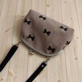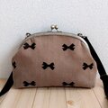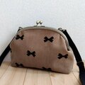 長財布も入る大きめ りぼん柄のがま口ショルダーバッグ 25cm口金 秋冬 クリスマス くすみブラウン 931