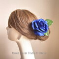 ロイヤルブルーの薔薇と葉っぱの髪飾り 花径110mm 青 青い薔薇 ロイヤルブルー ブルー 髪飾り バラ フローレス フラメンコ