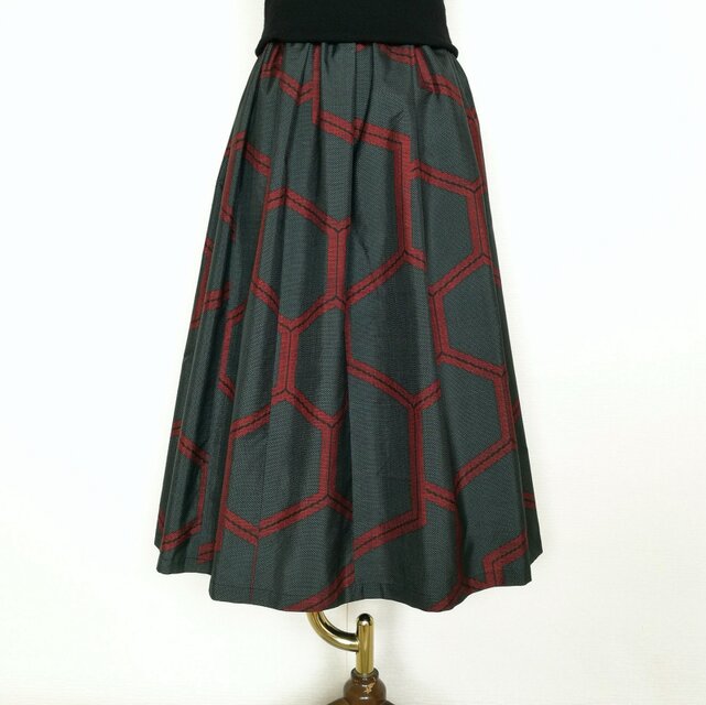 絹の光沢が美しい細かな亀甲柄で手持ちの普段の洋服とも合わせやすそうです。 (先ほど別のスカートにこちらのスカートの感想を入れてしまいましたが、別のスカートもざっくりした風合いの生地の素敵なスカートでした!すみません…) また、丁寧にご対応いただきありがとうございました。機会がありましたらまたどうぞよろしくお願いいたします。