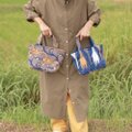 日本人にとってのソウルフードであるお米の稲柄が印象的なその名も「稲」というテキスタイル名の「オイシイネ!」というカラーのトートバッグSサイズです。