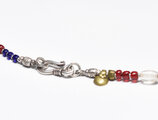 聖者のビーズとたわわな民族鈴、蜜柑&楕円クリアビーズ、インディゴブルービーズ、つぶつぶブラス、シトリンなどを繋いだネックレスです。