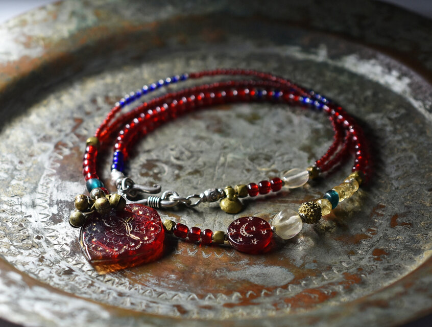異国情緒が楽しめるシックな赤色ネックレスです。