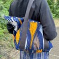 LAST1 ・シルクレーヨンスカーフ「稲」オイシイネ!AMONGさまのスカーフどれも素敵なのでどの柄にしようか迷いましたが、この稲の柄にしました。首に巻いてみたところ3色が絶妙のバランスで入っていてオシャレな装いに見えます。ネイビーと黄色も良い色ですが、意外とミルクコーヒーのような茶色?がお気に入りです。