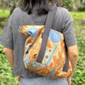 作品のお取引スムーズです。作品は落ち着いた色合いで素敵です。この大きさが首元に巻くのに私にはちょうどいいです。シルク×レーヨンの布地の肌ざわりがとても優しくて好きです。