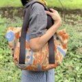 スパイス柄のボストンバッグです。ハリのあるやや薄手の帆布生地なので、なんといっても軽い!たくさん荷物を詰め込んでも、ファスナーを閉めてしまえば落とし物の心配もナシ◎スポーツジムや週末の温泉旅行に大活躍の予感です。