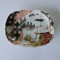 ユニークな構図の色絵変形皿