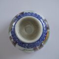 大正時代に作られた向付(むこうづけ)。絵付けは繊細で、松や花を思わせる意匠に金彩が施され、どこか異国情緒も感じさせます。小ぶりで手におさまりがよく、現代では湯呑みや小鉢としてもおすすめです。食卓に小さな輝きを添えてくれる器です。