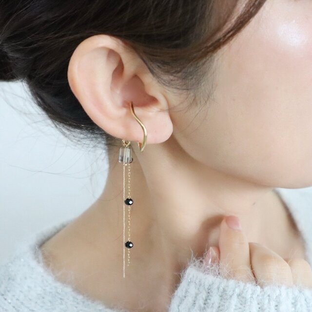 <2way>スモーキートパーズ 両耳イヤーカフ
