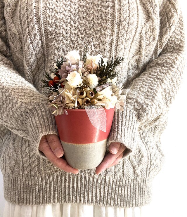 お届けする商品は、ポットアレンジメントと受け皿となります。撮影小物は商品に含まれません。予めご了承願います。