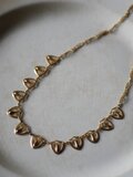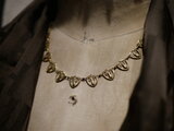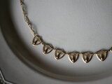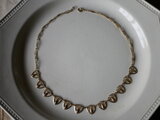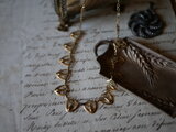 盾のような形をした透かし細工のモチーフが連なったネックレスは上品で華やかな気持ちにさせてくれます。