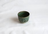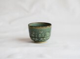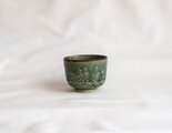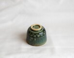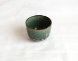 鉄をうって変化をだした織部の刻文ぐい呑み。