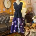【 和洋折衷リメイク 浴衣 オーバーオール ワンピース パッチワーク コラージュ ドッキング 切り替え レトロ 古着 ハンドメイド 濃紫に舞う、涼やかな夏の記憶 0-76 】