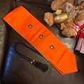帯地ならではの艶とハリが美しい、橙〜金茶へと溶け合う“ぼかし”グラデーション。上から金糸で描いた貴具モチーフ(貝桶を思わせる意匠)と流れる紐文がきらりと浮かぶ、華やかな片面ポイントデザインです。ワンピやシャツ、ニット、アウターの上からひと巻きで、装いを一瞬で和モダンに格上げする一点物の帯リメイクベルト。存在感たっぷりなのに合わせやすい万能カラーです。