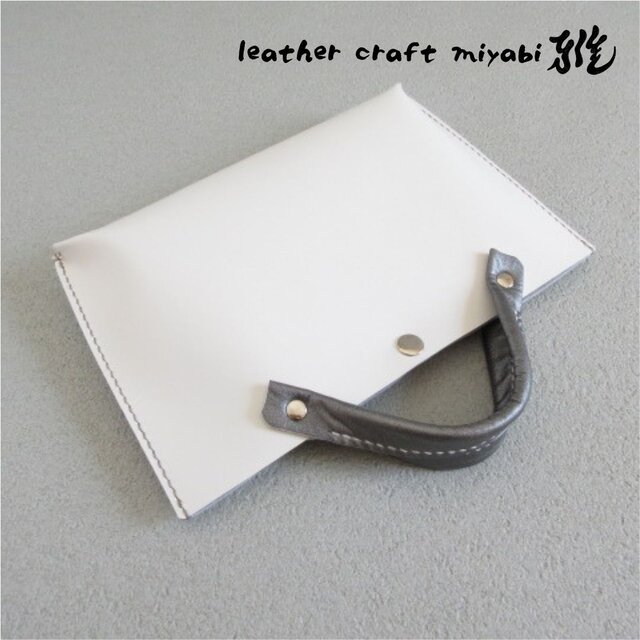 手縫い☆バッグインにも使えて小さくお出掛け♪《牛革》ハンドステッチ・ミニマルトート・ホワイト・0518