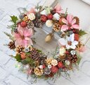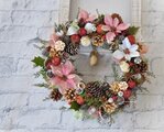 ミニポインセチアと木の実 ウィンターリース:クリスマスリース りんご 赤 ベル スノーフレーク