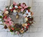 リース素材:アーティフィシャルフラワ-(造花):ポインセチア・コニファー・りんご・ヒイラギなど。