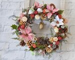 ベージュやグレージュのニュアンスカラーが美しい、ボリューム感のあるスワッグです。白バラ、ドライフラワー風の紅バラをアクセントにどこか時間を超えた幻想的な雰囲気も感じられてとても心惹かれます。 また、スワッグの向きや花器に応じた飾り方を提案して下さっているので、これから色々な表情を見つけて行ければと思います。今回も素敵な作品をありがとうございました。