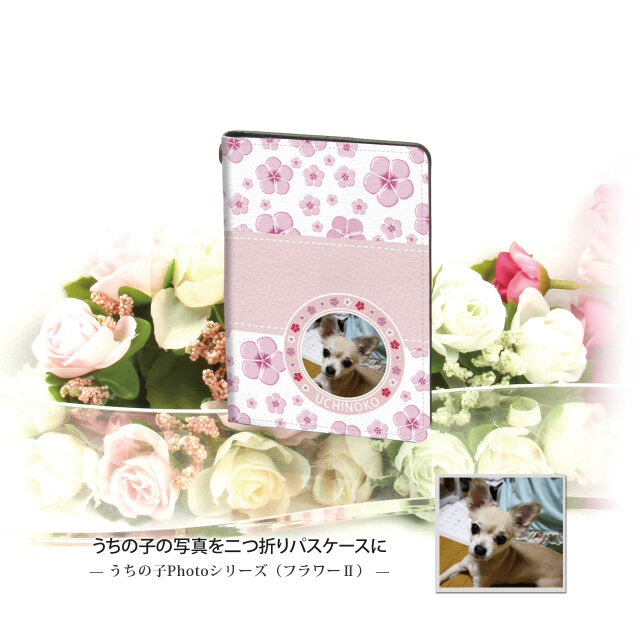 うちの子の写真で作る 二つ折りパスケース/ICカードケース/カードケース(フラワーⅡ)