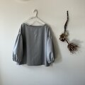 軽い着心地のウールブラウス。シンプルな身頃にふんわりボリュームのある袖を合わせたシルエット。