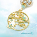 花咲く白うさぎの円形チャームに、コロンとしたビーズボールが彩りを添える、大人可愛いキーホルダーです。