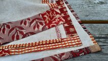 コーヒーストール BlockPrintパッチワーク×コーヒー染め:赤色 大判<草木染め・ブロックプリント・綿100%>