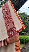 端を草木染めのブロックプリントの生地で囲んでいます□