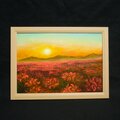「彼岸花の夕日」は、奈良県の御所市を舞台に、彼岸花と美しい夕日、遠くの山々、そして黄金色に輝く彼岸花畑を描いた特別な油絵作品です。この情景は、見る人に温もりと特別なひとときをもたらし、秋の美しさを心に刻むことでしょう。インテリアに華やかな色彩を添え、心に残る心地よい空間を演出します。