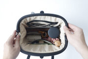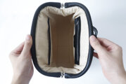 中央の小さなレザーパーツは、がま口を開けやすくするための