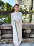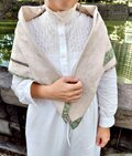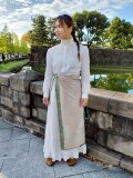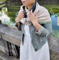 写真はワンピースで合わせていますが、ニットやシャツを着てパンツを履いた時に肩にかけたり、腰に巻いても素敵ですよ。