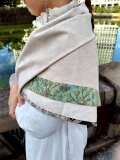 コーヒーストール BlockPrintパッチワーク×コーヒー染め:グリーン 大判<草木染め・ブロックプリント・綿100%〉