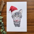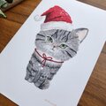 ◯クレパスで描いたキジトラ猫さんにサンタ帽子を被せてオシャレにしてみました。