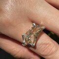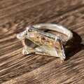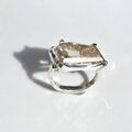 ルチルクォーツ 変形6角形ラフカット 交差する星の輝き ツメ留め シルバーSV925リング