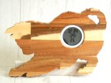 意匠を仔猫のシルエットのみとして、材のアカシア集成材の木目と木組みのモザイク模様を活かしてインテリアとして飽きのこない作りとしています。