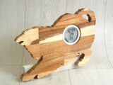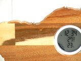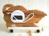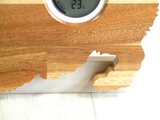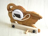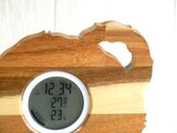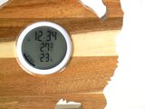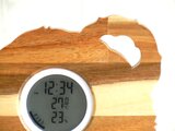 仔猫の姿を模った木製のデジタル温・湿度計(時計付)です。