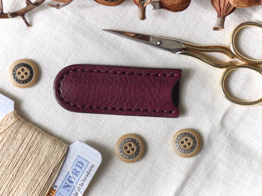 糸切りはさみケース/刺繍はさみカバー/ネイルシザー/革/ワインレッド
